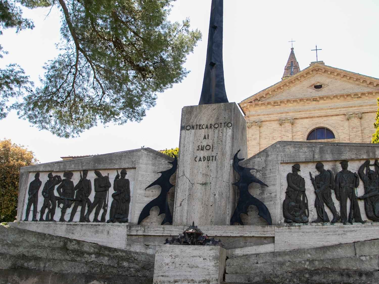 Il Monumento ai Caduti di Montecarotto è un’opera monumentale nata dall’unione di due monumenti realizzati in tempi diversi, ma composti in un’unica opera architettonica.